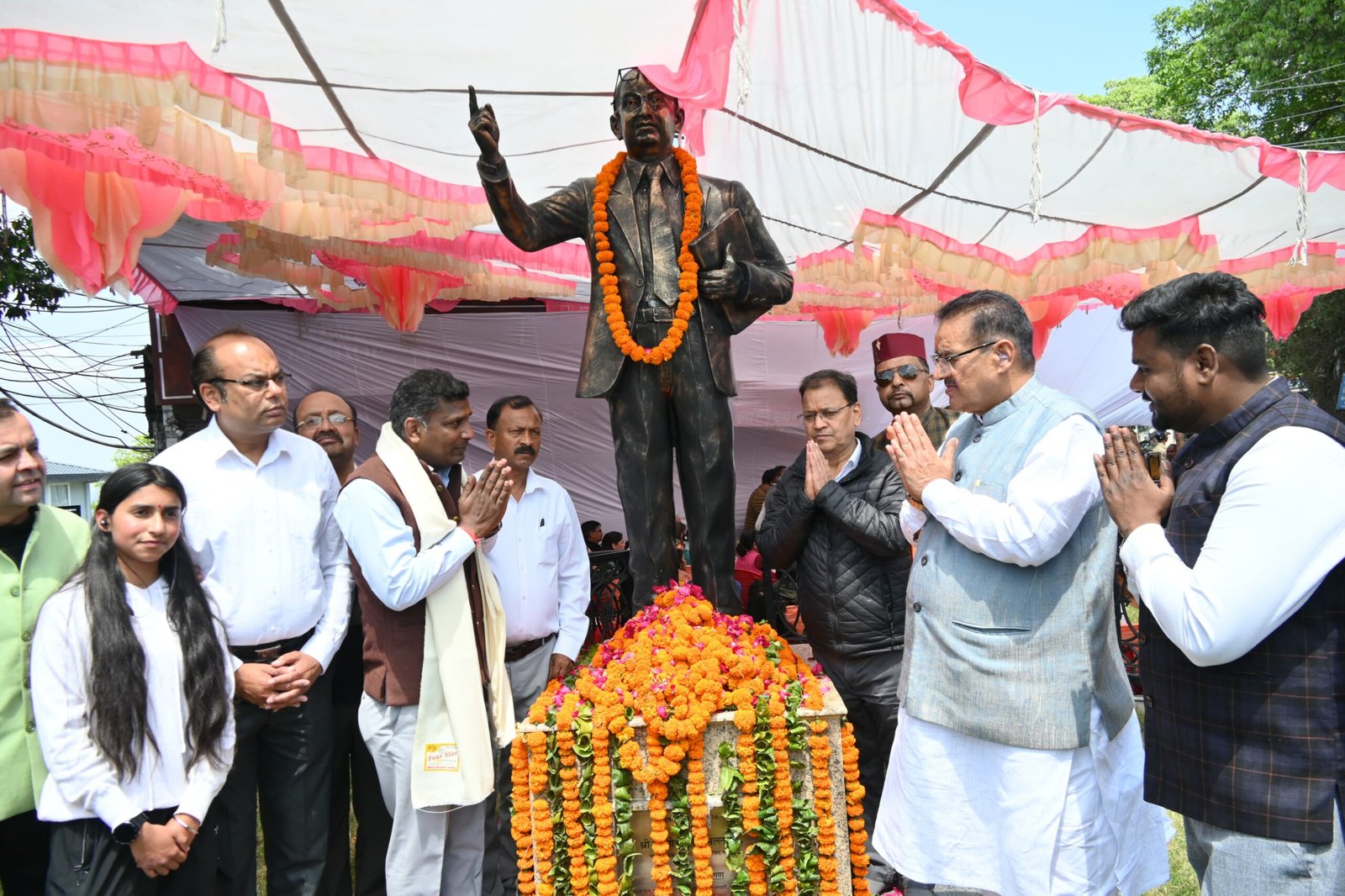 कार्यक्रम के मुख्य अतिथि प्रदेश के काबीना मंत्री गणेश जोशी ने कहा कि डा. अंबेडकर ने जिन बातों का उल्लेख अपने विचारों में किया, उनको धरातल पर लाने का कार्य प्रधानमंत्री नरेंद्र मोदी कर रहे हैं, उनका स्मारक बनाया गया, उनके जन्म स्थल को संवारने का कार्य किया, उनके समाधि स्थल को संवारने का कार्य किया, लंदन में उनके नाम पर शिक्षण संस्थाओं को सवारने का कार्य किया। उन्होंने कांग्रेस पर तंज कसते हुए कहा कि जिन लोगों ने साठ साल तक उनके नाम पर राज किया उन्होंने कुछ नहीं किया। उन्होंने कहा कि बाबा साहेब को केवल उनकी जयंती पर याद करना नहीं बल्कि उनके विचारों को आत्मसात करना ही असली नमन होगा। उन्होंने महिलाओं के सम्मान की बात की, सामाजिक भेद भाव को दूर करना होगा।