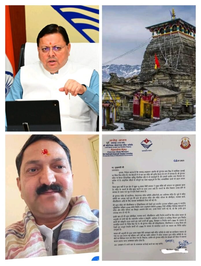 अजेंद्र ने कहा कि तुंगनाथ मंदिर बीकेटीसी के अधीन है। मंदिर समिति का अध्यक्ष रहते हुए उनके द्वारा तुंगनाथ मंदिर और मंदिर परिसर के जीर्णोद्वार, मरम्मत कार्य, सौंदर्यीकरण आदि के लिए व्यापक कार्ययोजना तैयार की गई थी।