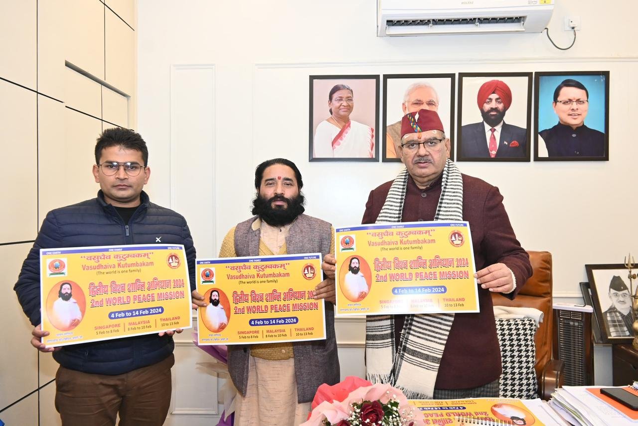 काबीना मंत्री गणेश जोशी ने अभियान की सफलता की कामना करते हुए प्राचीन ऋषि मुनि परंपरा, योग अध्यात्म और आयुर्वेद को देवभूमि उत्तराखंड की विरासत बताया। अभियान संयोजक योगाचार्य डा0बिपिन जोशी ने बताया कि वर्ल्ड पीस मिशन द्वितीय चरण में 5 से 7 फरवरी तक सिंगापुर, 8 से 10 फ़रवरी मलेशिया और 11 से 13 फ़रवरी तक थाइलैंड में विश्व शांति और सौहार्द के लिए योग, ध्यान और सर्वधर्म समभाव के कार्यक्रम आयोजित किए जायेंगें। जहां पवित्र गंगाजल, उत्तराखंड की टोपी, अयोध्या में नवनिर्मित श्री राम मंदिर प्राण प्रतिष्ठा का प्रसाद, मंदिर के माडल और चित्र भारतीय समुदाय के लोगो को भेंट किए जायेगे।