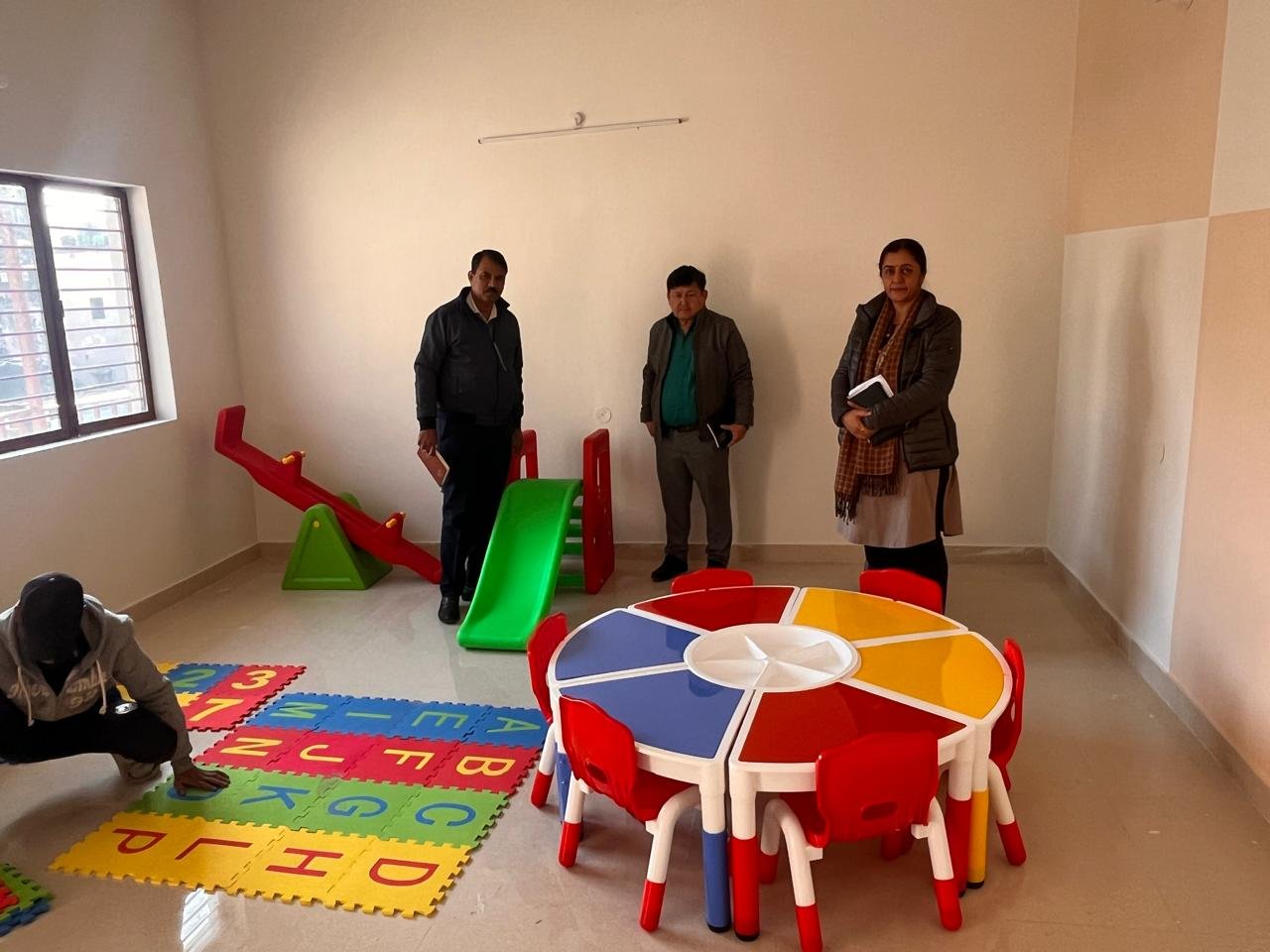 आधुनिक इनोसेटिव केयर शेल्टर बच्चों की खेल सामग्री, फर्नीचर आदि उपकरण से हो रही हैं विकसित।