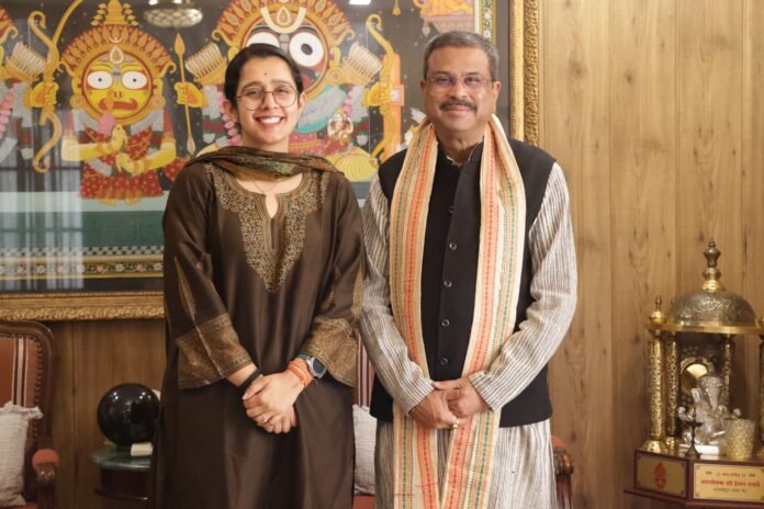 केंद्रीय शिक्षा मंत्री, बिहार चुनाव प्रभारी धर्मेंद्र प्रधान से भेंट कर जीत की बधाई देतीं भाजपा प्रदेश मंत्री नेहा जोशी