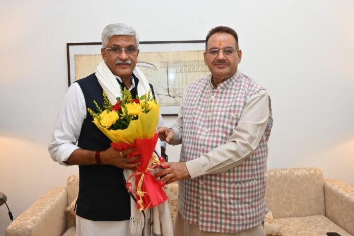 कैबिनेट मंत्री गणेश जोशी ने आज केंद्रीय पर्यटन और संस्कृति मंत्री गजेंद्र सिंह शेखावत का उत्तराखंड आगमन पर उनका पुष्प गुच्छ एवं शॉल ओढ़ाकर स्वागत एवं अभिनंदन किया। इस अवसर पर कैबिनेट मंत्री गणेश जोशी ने मसूरी को टूरिज्म डेस्टिनेशन के रूप विकसित करने का केंद्रीय पर्यटन मंत्री शेखावत से अनुरोध किया। केंद्रीय मंत्री गजेंद्र सिंह शेखावत ने प्रदेश सरकार की तरफ से शीघ्र प्रस्ताव भेजने और मामले में सकारात्मक आश्वासन कार्यवाही का भरोसा दिलाया। इस दौरान कई समसामयिक विषयों पर विस्तार से चर्चा की गई।