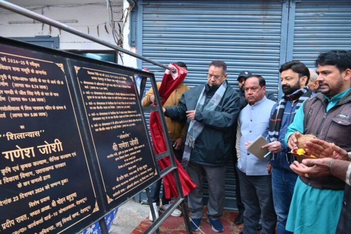 देहरादून, 23 दिसम्बर। कैबिनेट मंत्री गणेश जोशी ने आज मसूरी विधानसभा क्षेत्र के अंतर्गत देहरादून स्थित नैशविला रोड़ में वार्ड-10 डोभालवाला में 22 लाख से अधिक की लागत से विकास कार्यों का लोकार्पण तथा 13 लाख से अधिक की लागत से विकास कार्यों का शिलान्यास किया।