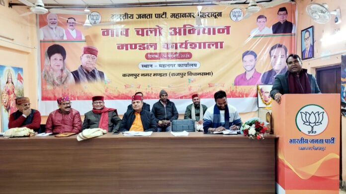भारतीय जनता पार्टी महानगर देहरादून के धर्मपुर मंडल करनपुर मंडल एवं श्री देव सुमन नगर मंडल में भारतीय जनता पार्टी के *गांव चलो अभियान* की कार्यशाला आयोजित की गई।