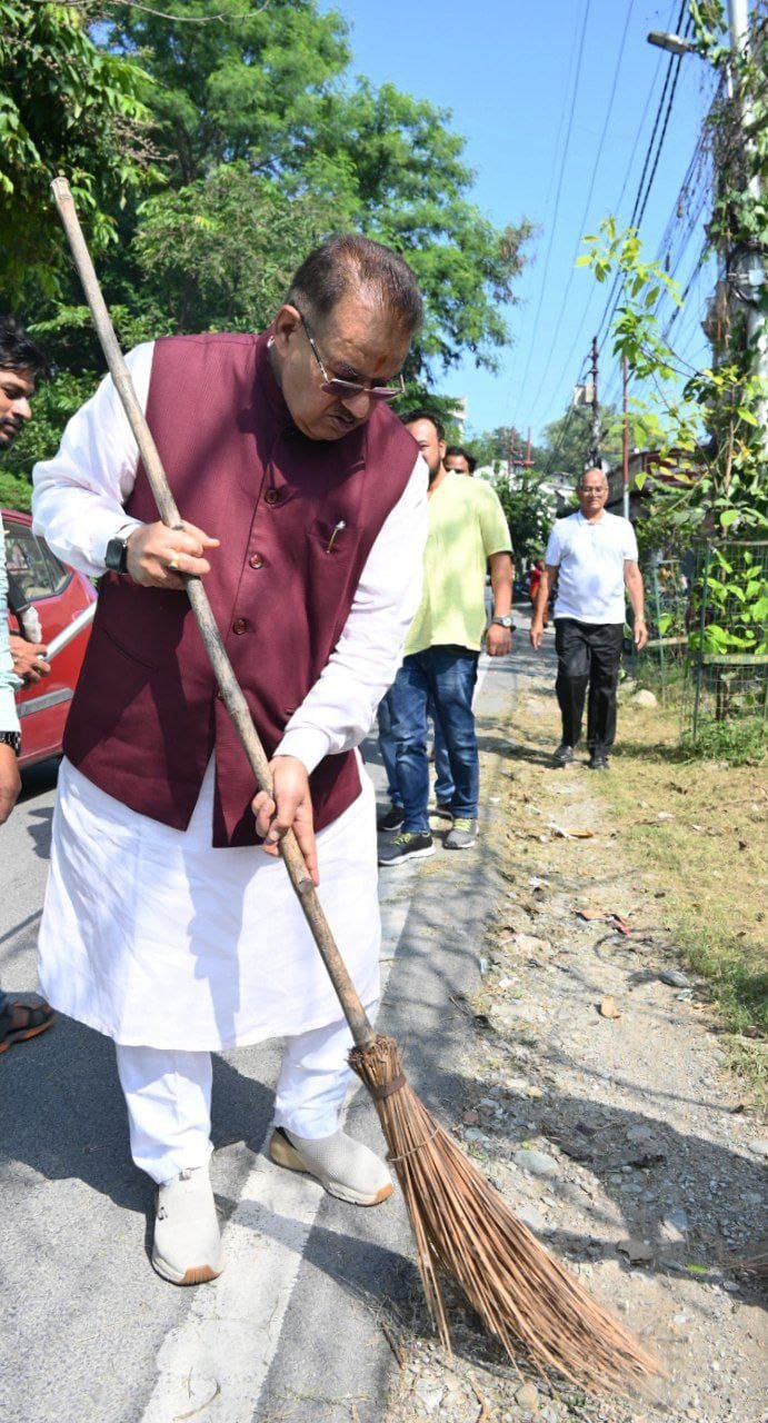 मंत्री गणेश जोशी ने आज केनाल रोड़ स्थित साकेत कॉलोनी में सेवा पकवाड़ा के अंतर्गत स्वच्छता ही सेवा कार्यक्रम में प्रतिभाग कर सड़क पर झाड़ू लगाकर स्वच्छता का संदेश दिया और स्वच्छता में श्रमदान दिया