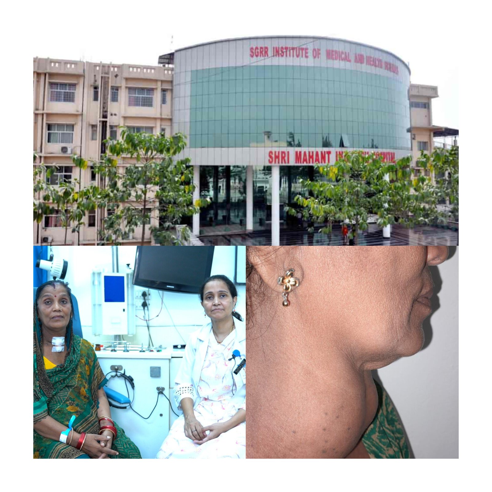 श्री महंत इन्दिरेश अस्पताल के नाक कान गला रोग विभाग की विभागाध्यक्ष डाॅ त्रिप्ती ममगाईं व उनकी टीम ने एक मरीज़ के गले से एक किलो का थायराइड ट्यूमर निकाला