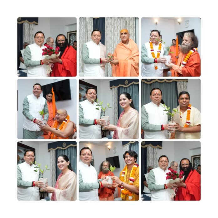 उत्तराखंड की रजत जयंती वर्ष के अवसर पर आज मुख्यमंत्री आवास आध्यात्मिक ऊर्जा और सांस्कृतिक सौहार्द का केंद्र बन गया, जब देशभर के प्रमुख संतों एवं धर्माचार्यों ने मुख्यमंत्री श्री पुष्कर सिंह धामी से भेंट कर राज्य की प्रगति, सांस्कृतिक संरक्षण और अध्यात्मिक समृद्धि के प्रति उनके प्रयासों की सराहना की।