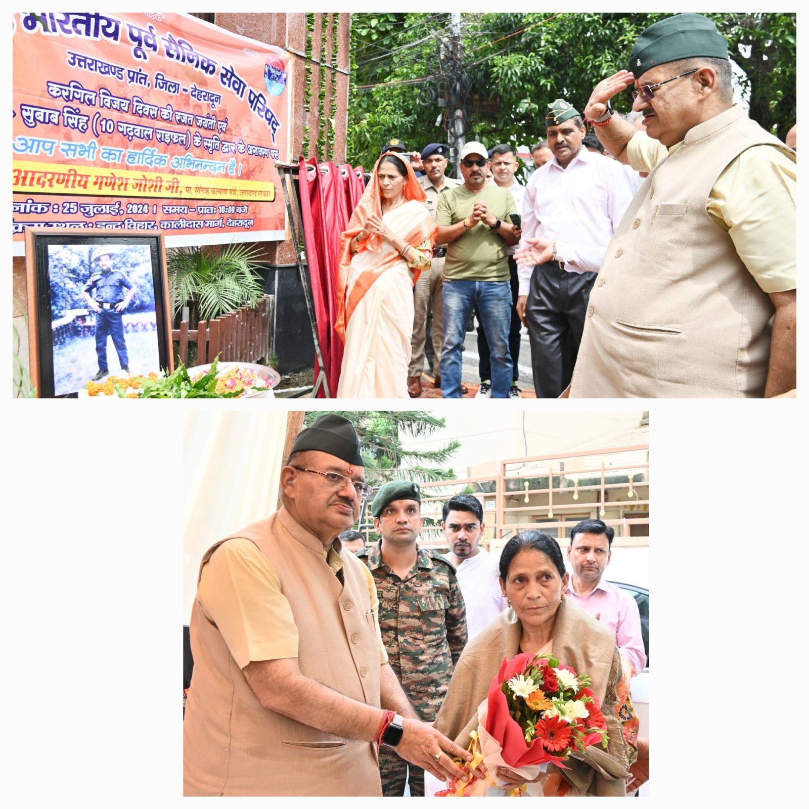 सैनिक कल्याण मंत्री गणेश जोशी ने गुरुवार को देहरादून में अमर शहीद हवलदार सुबाब सिंह सजवाण की स्मृति में निर्मित शहीद द्वार का अनावरण किया
