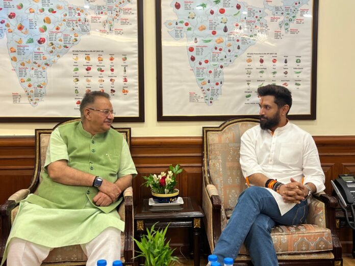 केंद्रीय खाद्य प्रसंस्करण उद्योग मंत्री चिराग पासवान से कृषि मंत्री गणेश जोशी ने की शिष्टाचार भेंट , इस मुद्दे पर हुई बात..